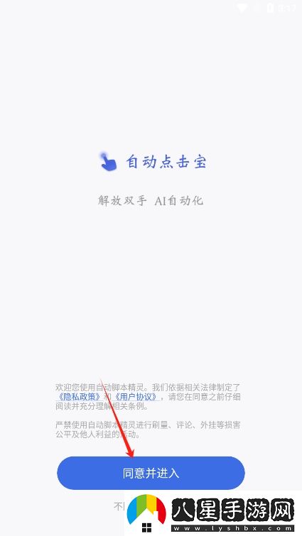 2、進(jìn)入后閱讀并同意自動(dòng)腳本精靈app的用戶協(xié)議