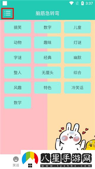 1、點擊進(jìn)入笑話大王軟件當(dāng)中,選擇左上角欄目條;