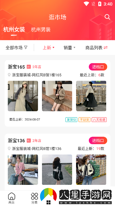 4、點擊逛市場可以上新各類服裝