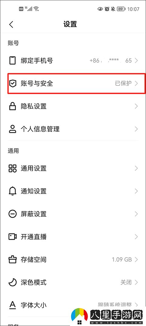 2、找到賬號與安全點(diǎn)擊進(jìn)入;
