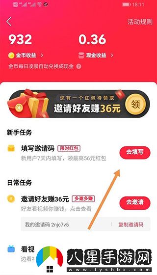 3、點(diǎn)擊填寫邀請碼一欄后的“去填寫”;