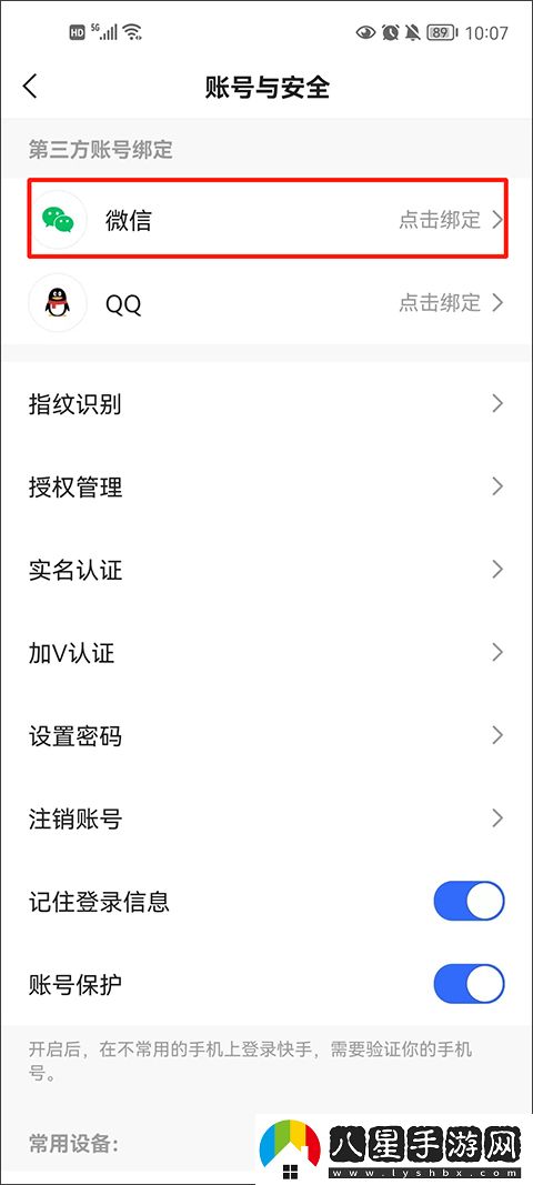 3、在此界面點(diǎn)擊微信進(jìn)入第三方綁定;