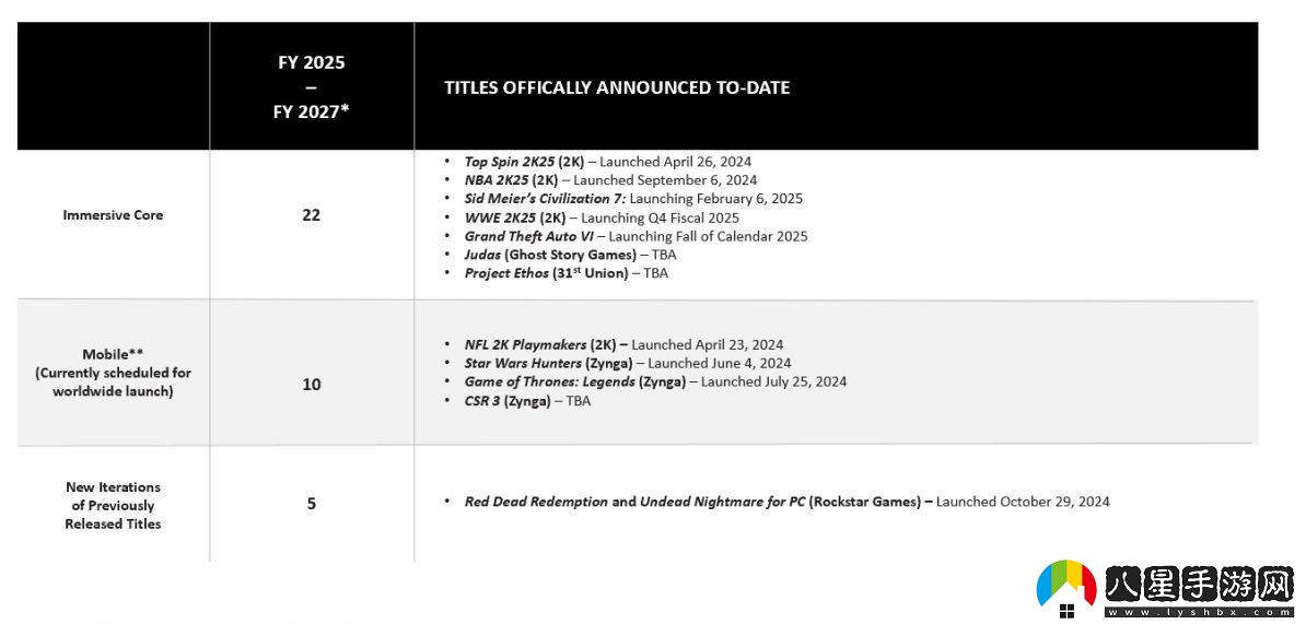 以下是Take-Two正在開發(fā)的游戲的詳細信息,與上一季度相比沒有顯著變化。GTA6仍計劃于2025年秋季發(fā)行。唯一的重大變化是由于今天宣布出售Private Division,獨立游戲被移除。買家和售價未知。