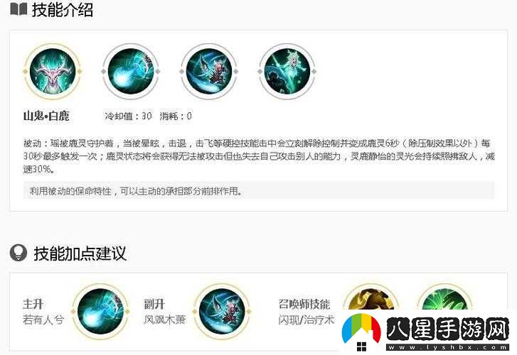 瑤被鹿靈守護著,當(dāng)被暈眩,擊退,擊飛等控制技能擊中時,會立即解除控制并變成鹿靈,持續(xù) 4 秒(除壓制效果以外),期間無法被攻擊,但也無法攻擊敵人,鹿靈狀態(tài)將會獲得無法被攻擊減速效果,并且自身將會減少 30%的傷害。鹿靈可以讓瑤在被控制時免受傷害并快速逃離戰(zhàn)場,同時也可以在追擊敵人時提供一定的靈活性。