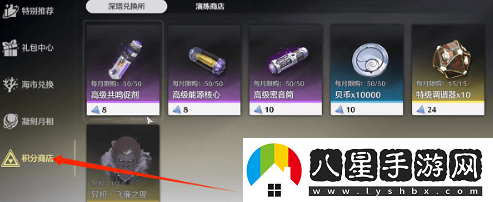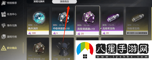 2、然后點擊左側(cè)狀態(tài)欄下方的積分商店,接著在深塔兌換所頁面,可以兌換50個【高級密音筒】,每月最多50個。