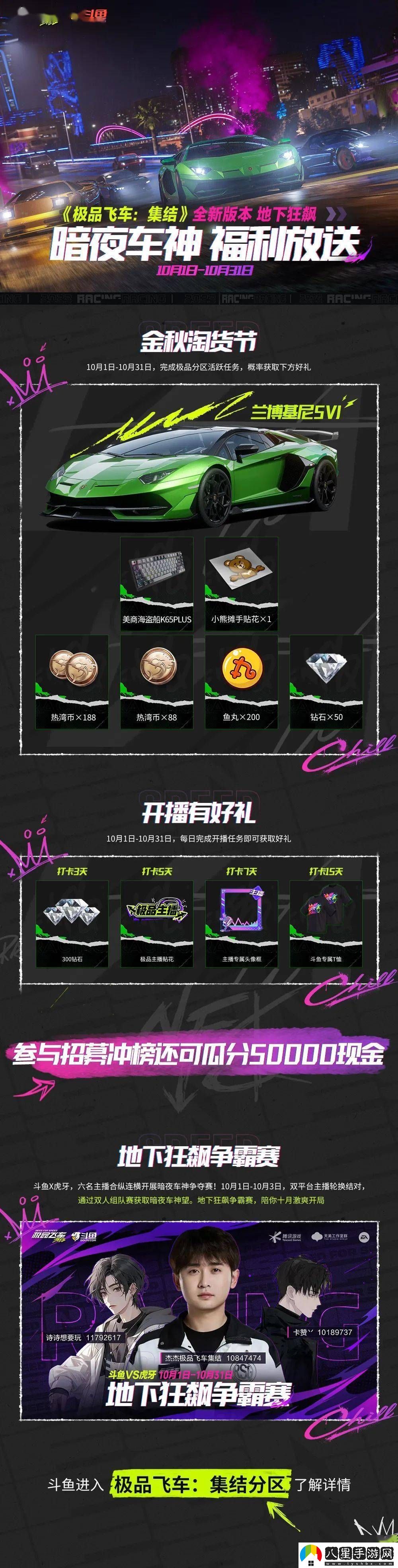 更令人期待的是,斗魚與虎牙兩大直播平手舉辦的“地下狂飆爭霸賽”也即將拉開帷幕。屆時(shí),眾多頂尖主播將齊聚一堂,展開激烈的角逐,爭奪暗夜車神的至高榮譽(yù)。這場賽事不僅考驗(yàn)主播們的駕駛技巧,更是對他們團(tuán)隊(duì)協(xié)作和戰(zhàn)略部署能力的全面檢驗(yàn)。